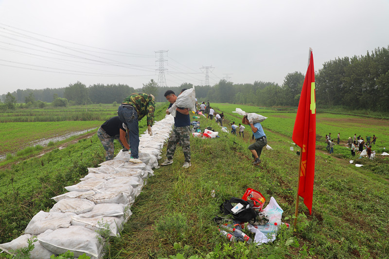 7月27日晚,明光市女山湖北岸丰收圩破堤,位于潘村洼南端的苏堤即将临水,根据明光市防汛抗旱指挥部安排,潘村湖农场公司抗洪抢险突击队于28日晨迅速集结,驰援苏堤。邱达、安继凤、孙奎宣等农场公司领导靠前指挥,并与70名突击队员并肩作战,按地方防指统一部署,快速构筑防洪子堤,确保苏堤农场责任段堤防安全。(杨登宏 )